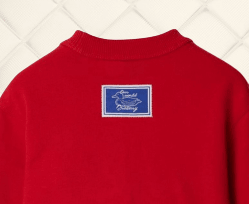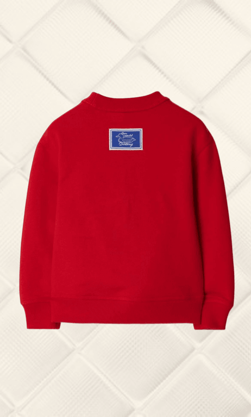 拼色毛圈平織棉衫。綴飾典藏水鳥圖案貼 花,以拼接 Burberry 格紋創意詮釋。收錄於 Remake 童裝特選系列,此系列的主要材質為 Burberry 開發過程中的多餘布料,透過創意再 造,賦予這些材料新生命與價值。